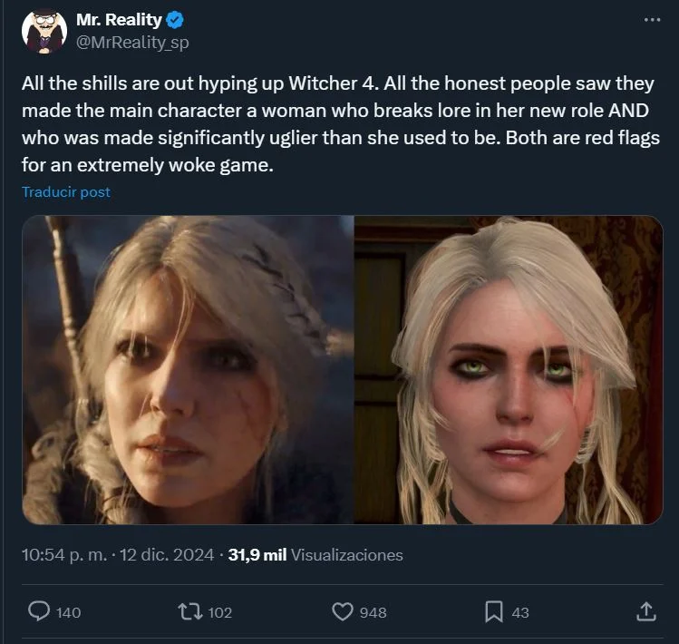 Las opiniones más radicales señalaron que el rostro de Ciri se veía menos atractivo e incluso con rasgos masculinos. Esto llevó a algunos a creer que el estudio había modificado intencionalmente su diseño para alinearse con ciertas tendencias actuales en la industria.